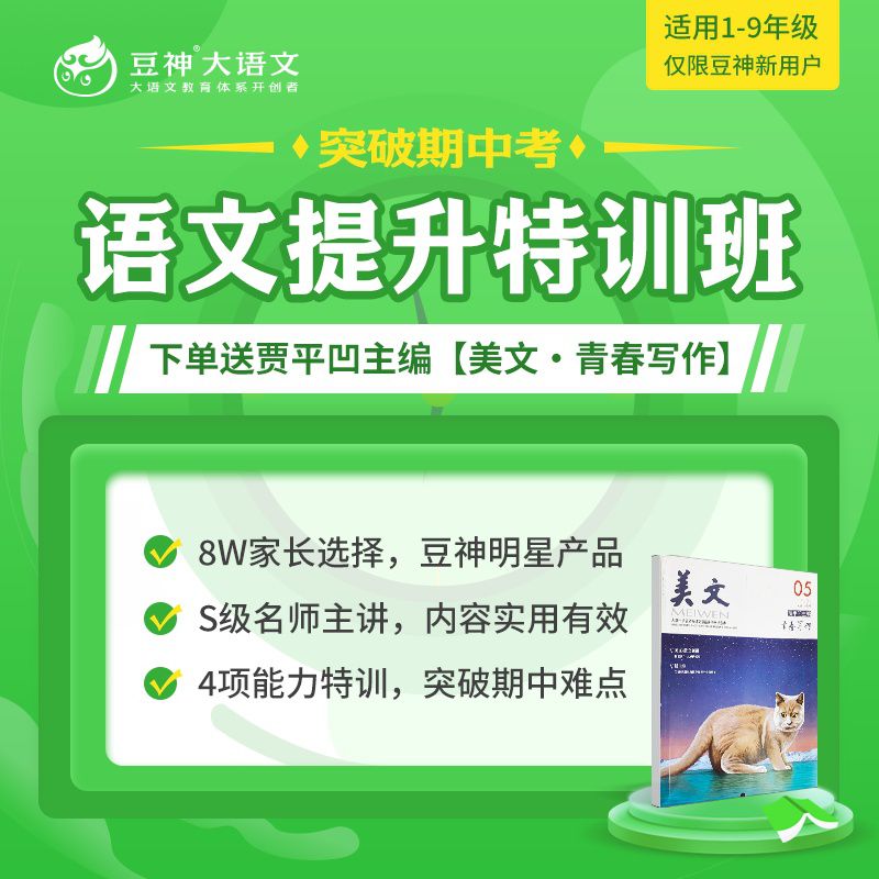 窦昕力荐,1-9年级学生速抢!【豆神语文提升特训班】限时9元,下单即送贾平凹主编《美文·青春写作》杂志1本,全力突破期中考,就趁现在!