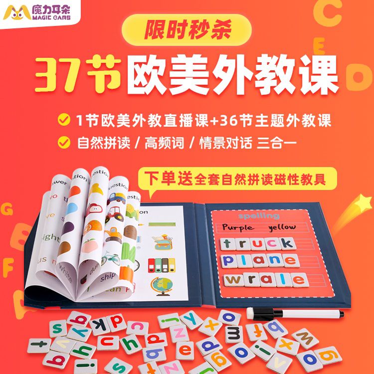 【限时福利 | 下单送全套自然拼读磁性教具】魔力耳朵·36节主题外教课+1节欧美外教直播课,自然拼读/高频词汇/情景对话轻松搞定!