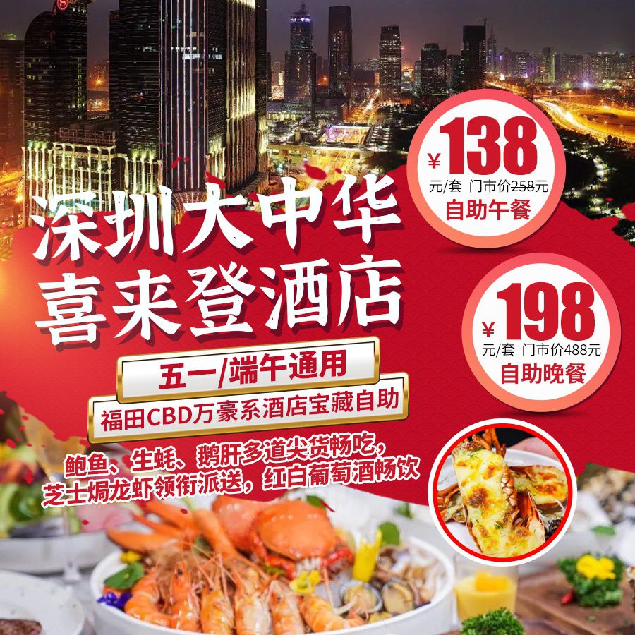 【五一/端午通用】福田CBD万豪系酒店宝藏自助!¥138起/位,私享『深圳大中华喜来登酒店』自助午/晚餐!鲍鱼、生蚝、鹅肝多道尖货畅吃,芝士焗龙虾领衔派送,红白葡萄酒畅饮,高颜值甜品分分钟治愈味蕾!