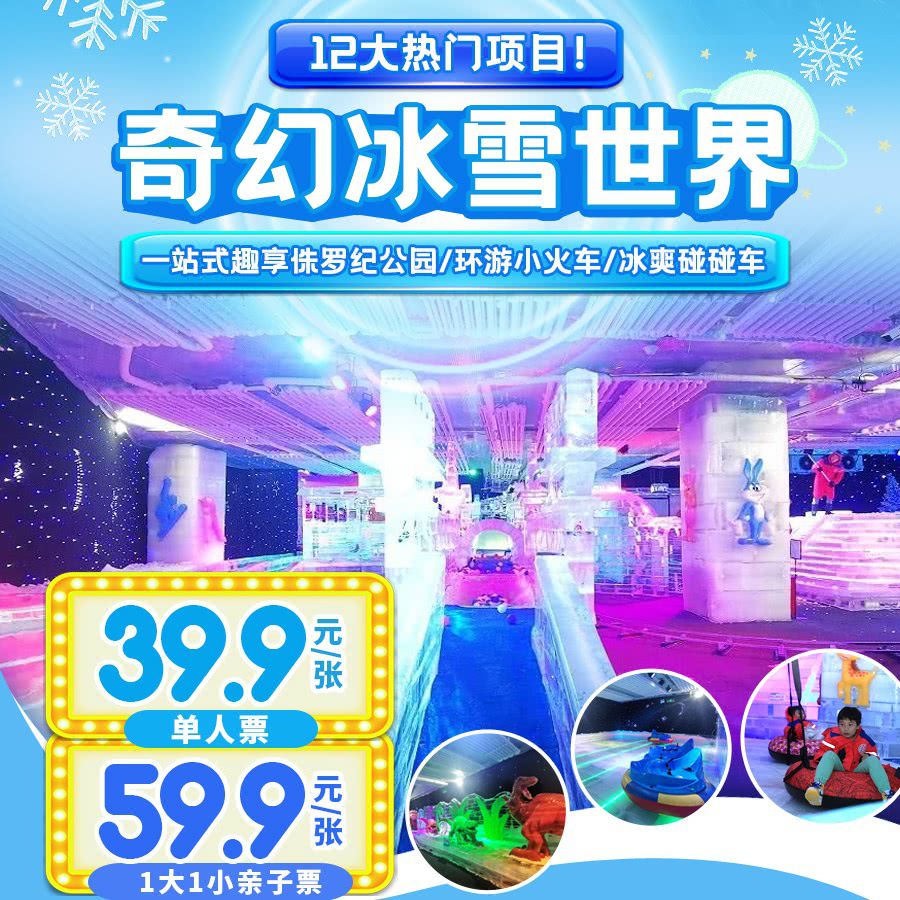 1秒穿越到冰天雪地!¥39.9起玩转深圳3000m²『沙井奇幻冰雪世界』!一站式趣享侏罗纪公园、环游小火车、冰爽碰碰车等12种热门项目!尽享欢乐玩雪时光,解锁夏日酷爽新体验!