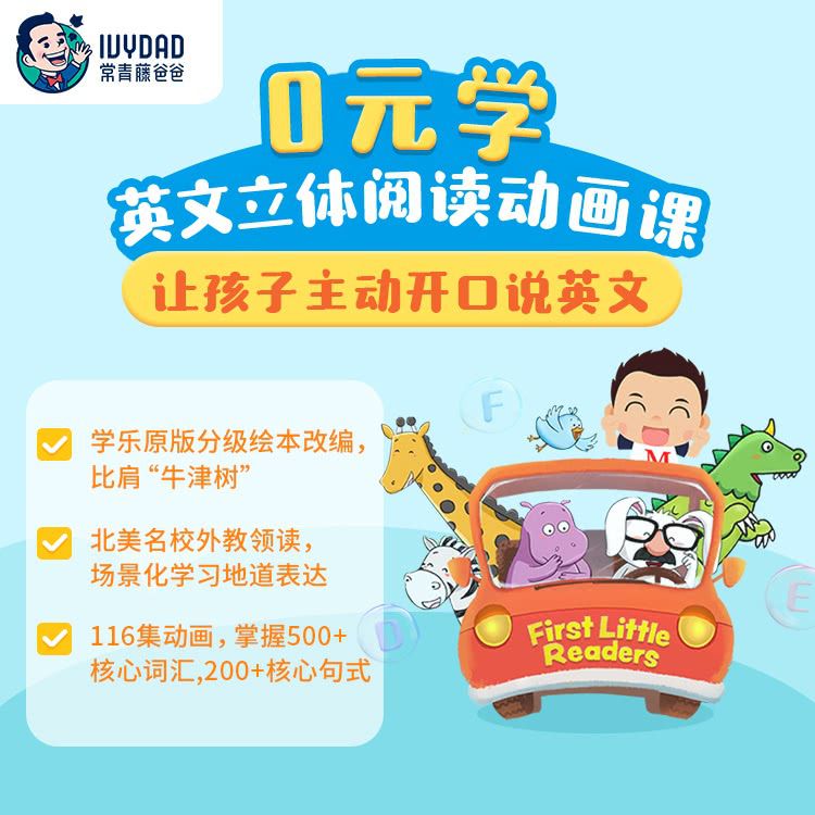 【0元学返场:4月19日-4月25日 | zui后一期】常爸英文立体阅读动画课,225课场景化绘本动画,掌握500+核心词汇,200+核心句式,北美专业外教带读,学会地道发音!