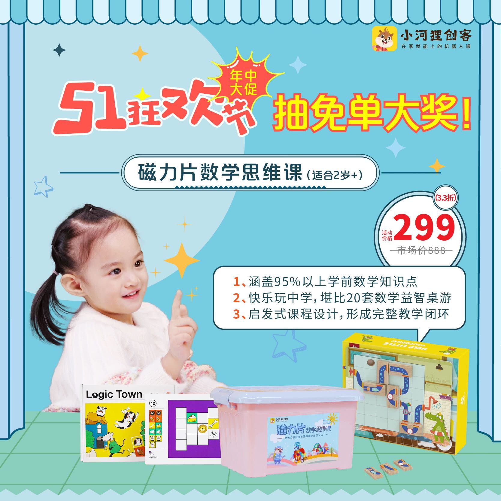 【五一限时活动丨加赠10节思维棋课+早教玩具抽奖】好奇星小河狸创客磁力片数学思维课,配套价值220元磁力片套装教具,专为低幼宝宝打造,为宝宝搭建独特的数学启蒙!