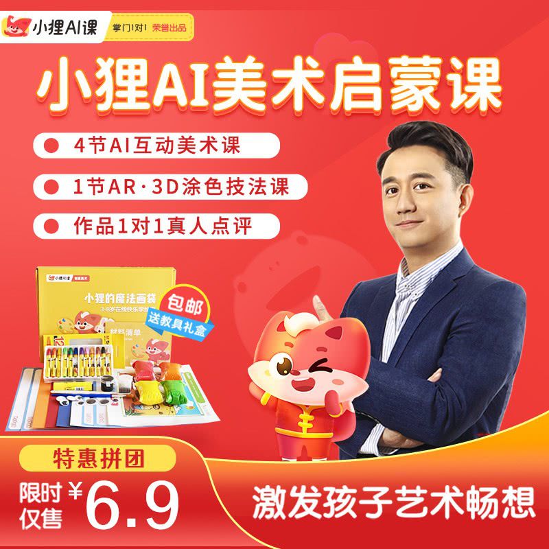 【限时特惠拼团6.9元丨包邮送精美绘画教具】小狸AI美术课4节+AR·3D涂色技法课1节,全民美育从小抓起,0基础也能画出好作品!每天20分钟,成就创造力!