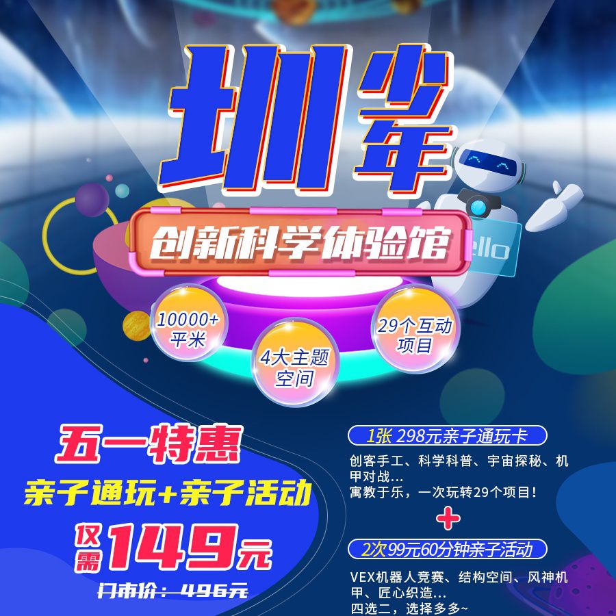 10000+㎡深圳超大科普乐园!51专享价,仅¥149/1大1小,一票通玩『圳少年创新科学体验馆』:4大主题空间,29个互动项目!寓教于乐,科学启蒙,奇妙感官新体验走起!