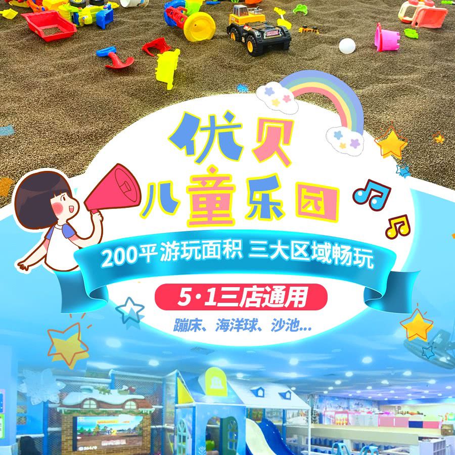 【5·1三店通用】19.9元1大1小抢深圳优贝儿童乐园,200平游玩面积三大区域畅玩,蹦床、海洋球、沙池...位于商圈内部,逛街溜娃两不误!