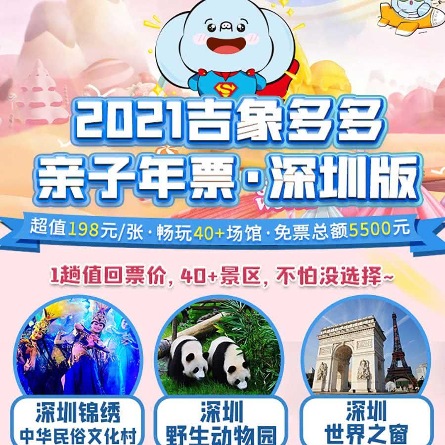爆款返场!玩一个景区就回本!仅¥198抢2021吉象多多亲子年票•深圳版!一卡在手,轻松畅玩锦绣中华、世界之窗、深圳野生动物园等40+景区,更有20家优质劲爆新场馆加入!