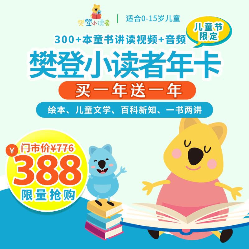 【儿童节预售丨买一年送一年】樊登·小读者学堂限时活动,一书两讲,绘本、儿童文学、百科新知、桥梁书等上百本,让孩子爱上读书!