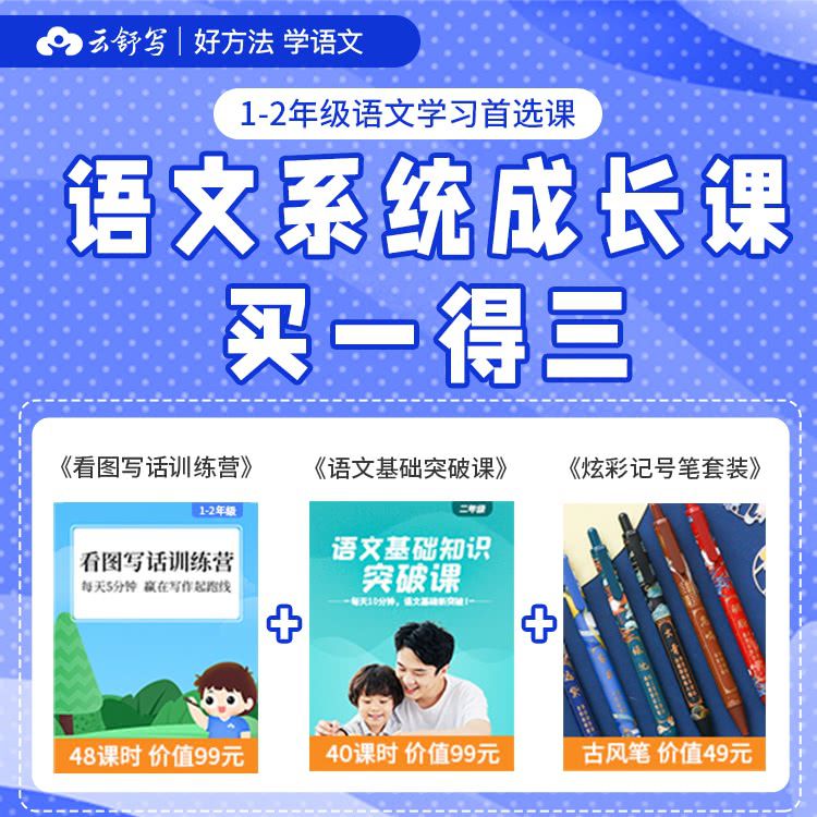 【云舒写·语文系统成长课】看图写话训练营+基础知识突破课,1-2年级语文学习必备,包邮送炫彩记号笔套装!