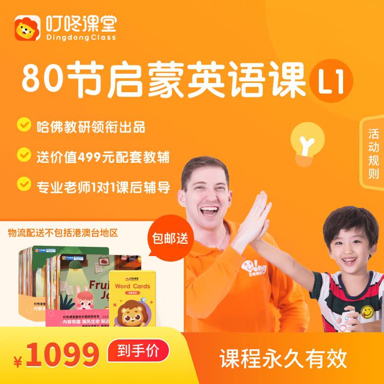 【包邮送20本配套绘本+60张配套单词卡】叮咚课堂80节启蒙英语课L1,2-5岁必备!九大主题情景发散式课程设计,融入生活场景,打造幼儿专属英语课堂~