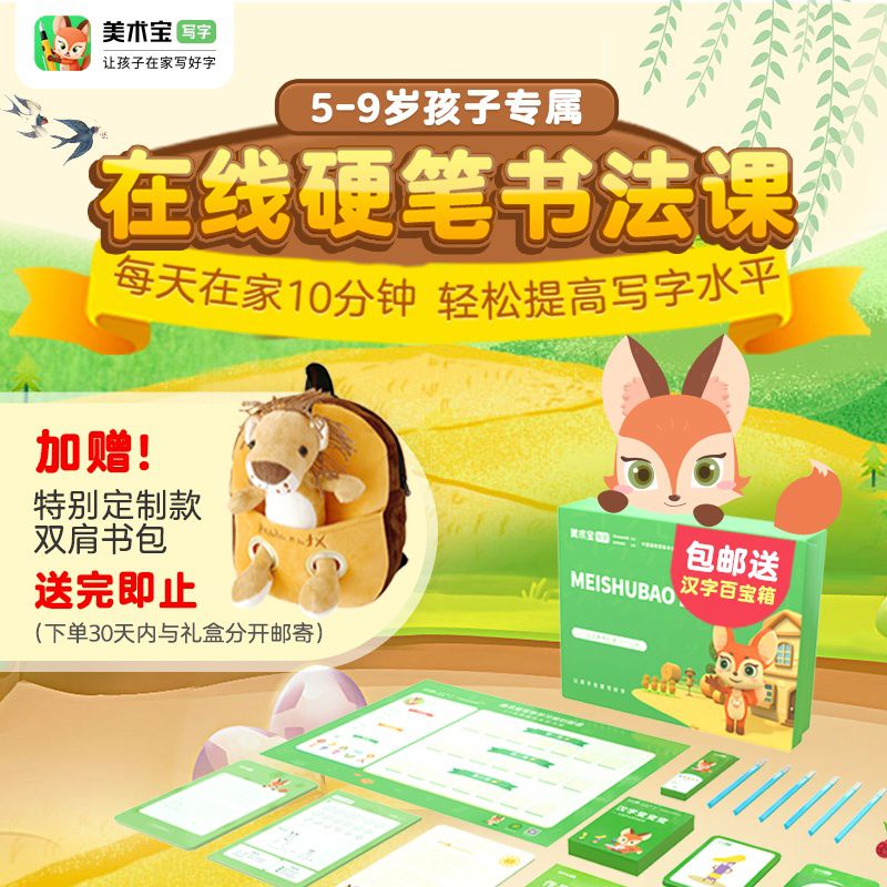 【限时3天 | 儿童节加赠双肩包】美术宝・小熊写字AI体验课,包邮赠汉字百宝箱礼盒,趣味动画情景课堂+专业老师社群辅导,适合5-9岁!满足幼小衔接到小学阶段孩子的练字需求,好字从小养成