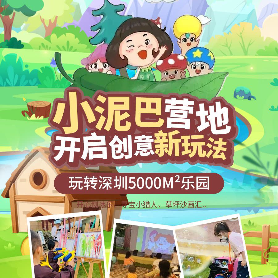 地铁直达!¥49.9起抢夜场票!玩转深圳5000m²『小泥巴营地』,畅享森林泡泡秀、神笔水枪、开心刨冰乐、寻宝小猎人、草坪沙画汇...N+游玩项目,开启创意新玩法!