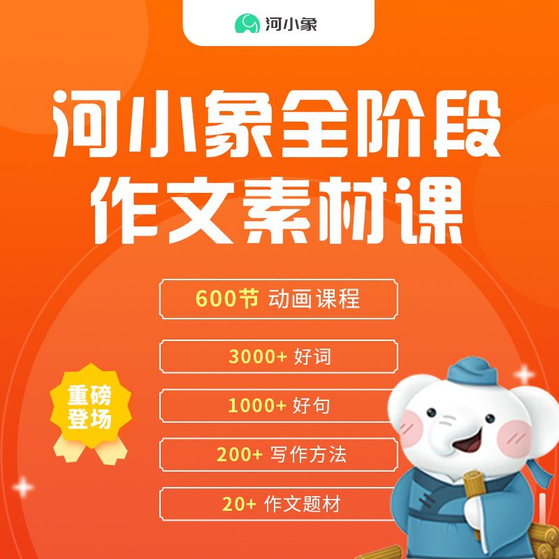 【河小象全阶段600节作文素材课】适合1-6年级,原创精美动画片➕老师讲解知识点,每天15分钟,帮助孩子建立自己的写作素材库