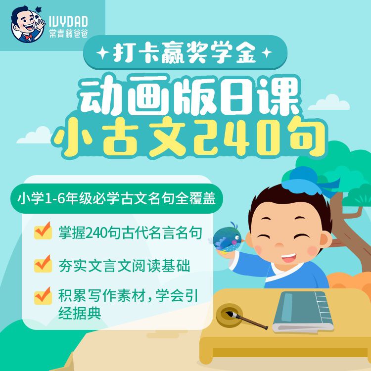 【zui后一期 | 打卡赢150元奖学金】常青藤爸爸小古文240句,小学1-6年级部编版必学古文名句全覆盖,5大主题,每天4个环节,深入浅出,日积月累,成就小天才!