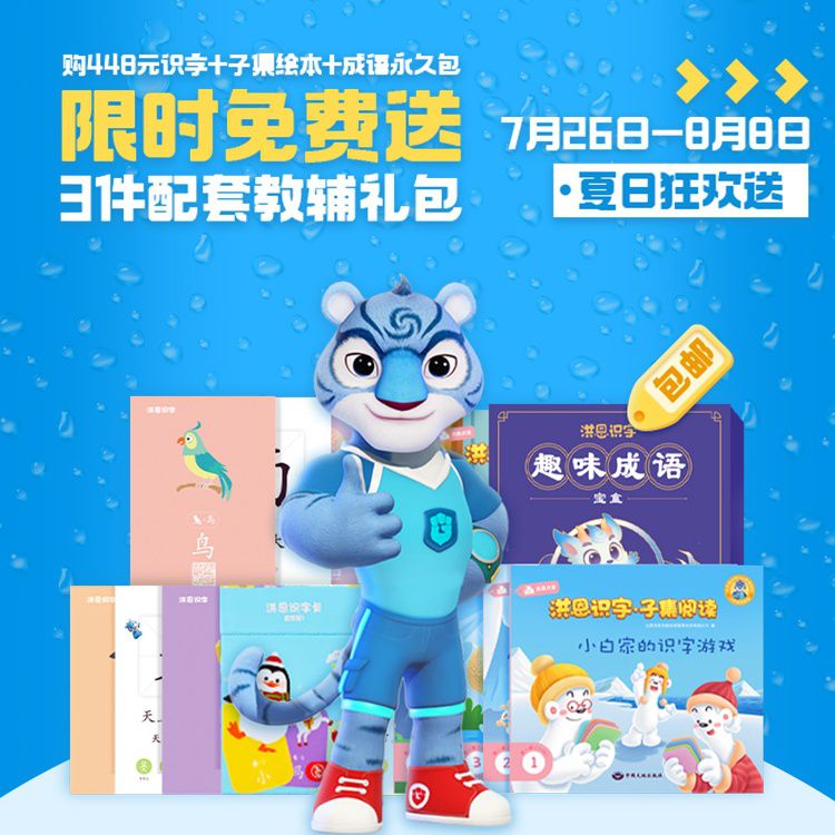 【7.26-8.8丨包邮送3件教辅礼包】洪恩永久识字包+子集绘本永久包+成语永久包,给娃专业分级的阅读识字和国学启蒙,动画导入,快测快练跟上,省时又高效!