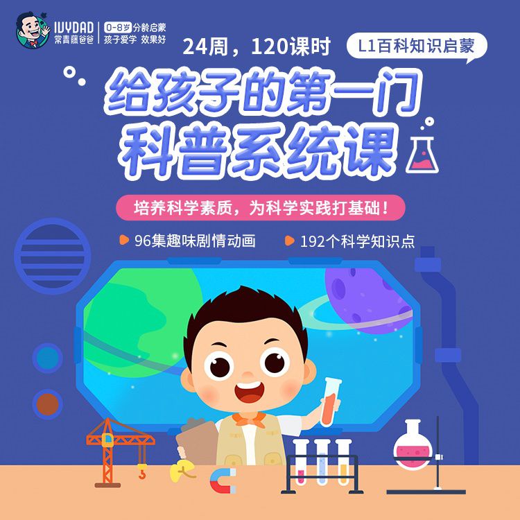 【打卡赢150元奖学金】常爸百科知识启蒙120课:96集剧情动画串联科普内容,192个科学知识点涵盖4大学科领域,让孩子迷上科学,探索多维度的知识~