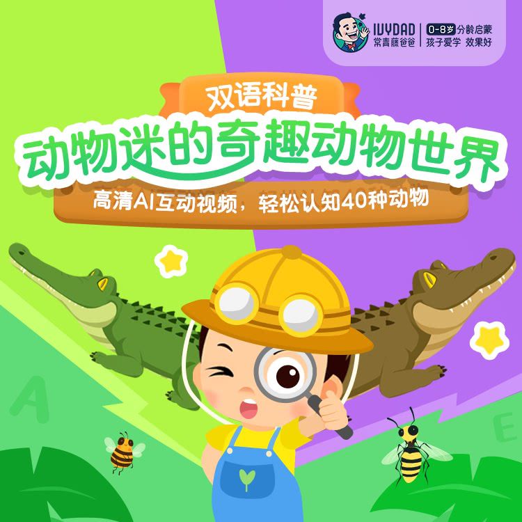 【3人成团,仅需19.9元】常爸新课-动物迷的奇趣动物世界(双语科普),AI互动➕绘本阅读➕真人弹唱➕趣味配音,40种动物轻松认知