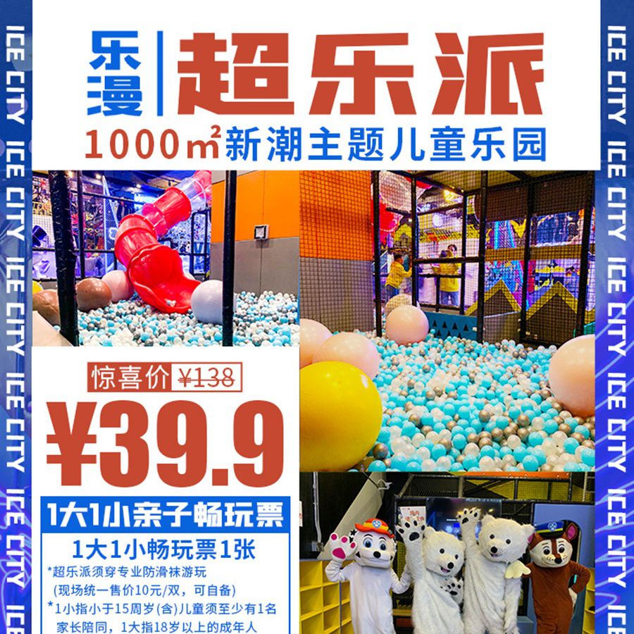 1000㎡新潮主题儿童乐园!¥39.9=1大1小畅玩【超乐派乐园】:蹦床、海洋球池、吊桥等超多游玩项目,酷炫高颜值网红打卡点!周末通用,遛娃好去处~