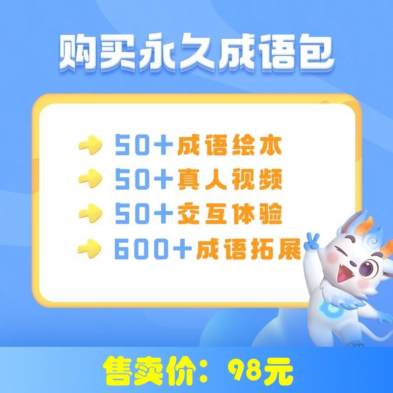 【洪恩识字永久成语包丨赠价值68元趣味成语宝盒】50+成语绘本、600+成语拓展,趣味典故故事引入成语,打造真人沉浸式讲解~