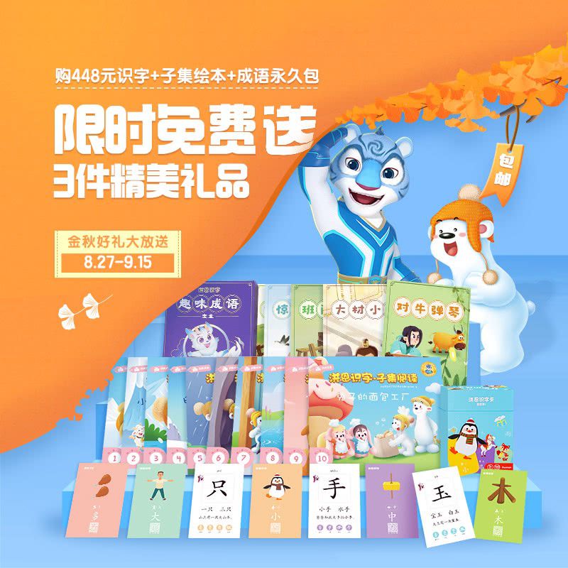 【8.27-9.15丨包邮送成语绘本+识字卡100张+子集绘本】洪恩永久识字包+子集绘本永久包+成语永久包,给孩子专业分级的阅读识字,动画导入,容易培养孩子的兴趣!