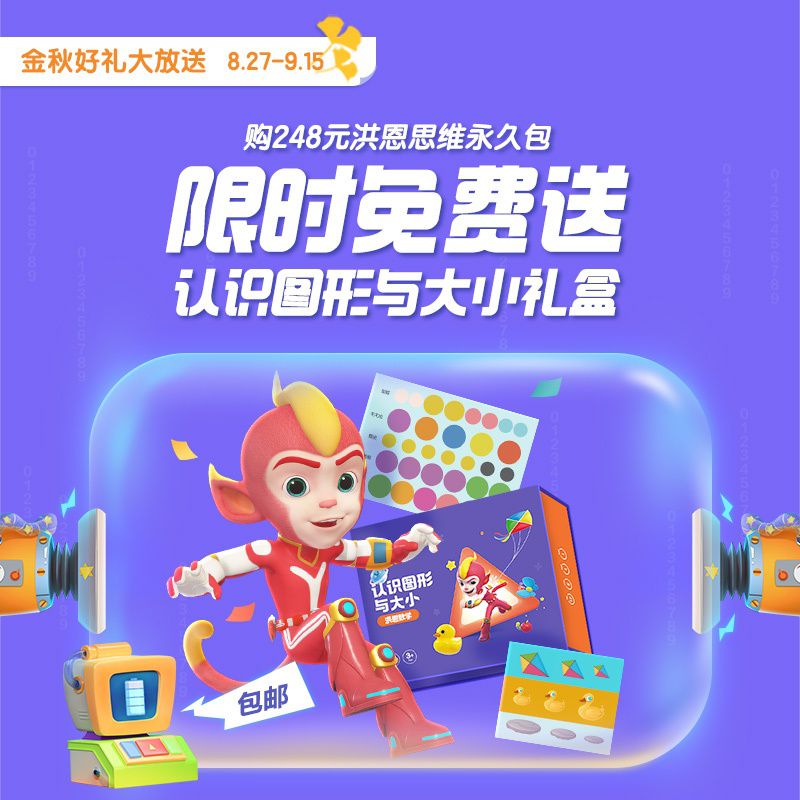 【8.27-9.15丨包邮送认识图形与大小】洪恩思维永久使用权益,趣味思维训练游戏,增强宝贝记忆力,口算更快~