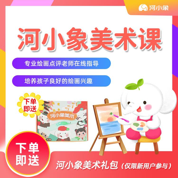 【19.9元3节 | 包邮送美术礼包】河小象美术课,专业绘画点评老师在线指导,培养宝贝绘画兴趣