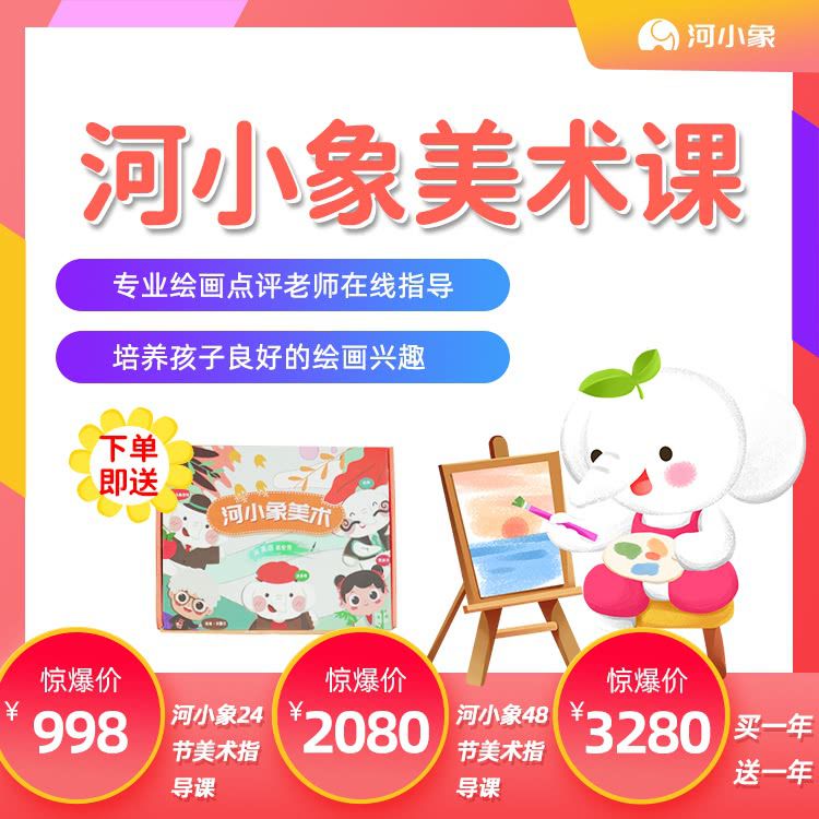 【超值课时包 | 包邮送配套教材大礼包】河小象美术·季卡/半年卡/年卡,囊括常用绘画类型,0基础起步,双师在线,点评1对1
