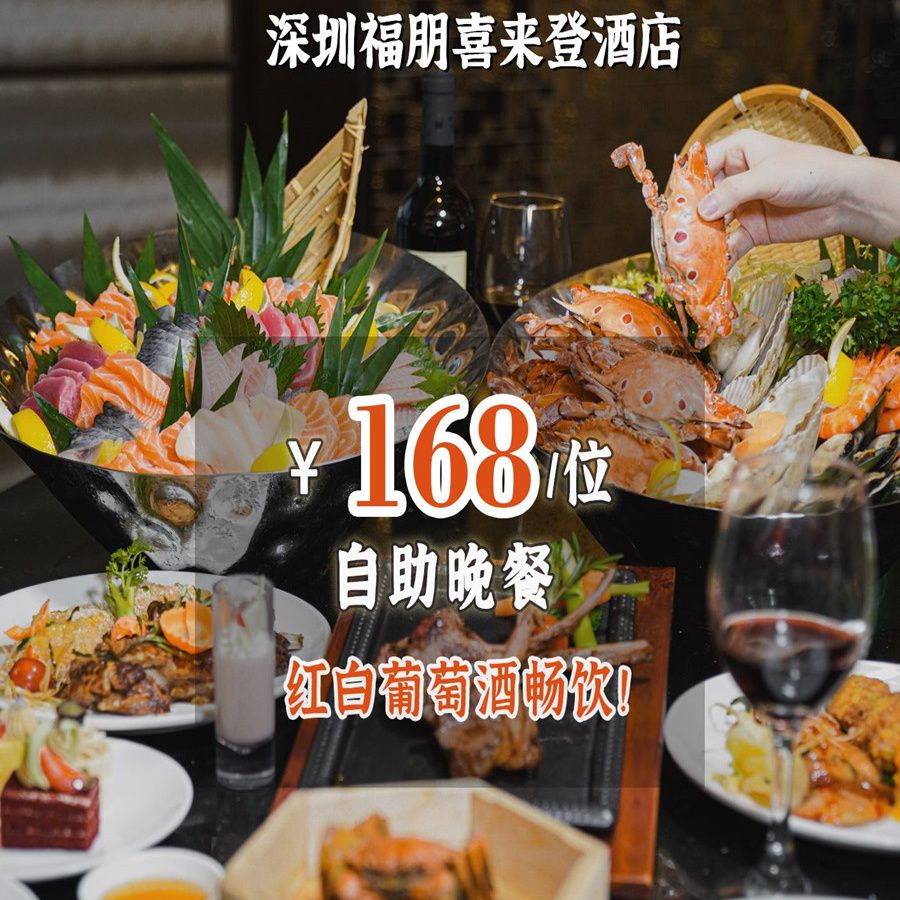 【全周通用】万豪系酒店,3+款硬菜惊喜派送!¥168/位,奢享『深圳福朋喜来登酒店』:大闸蟹秋季限定,生蚝/鹅肝/鲍汁捞饭秒回本!8+款酒水开启畅饮派对!