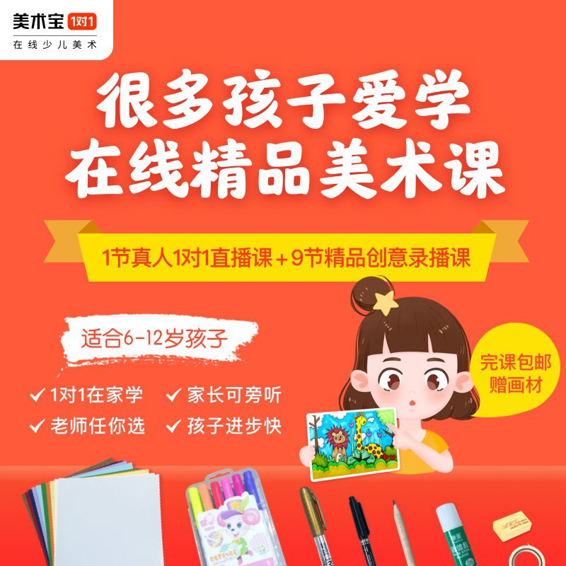 【9月30日前完课包邮赠49元画材礼盒】美术宝1V1直播课1节+9节精品录播课,6~12岁零基础也能玩转美术,全面培养孩子的艺术素养!