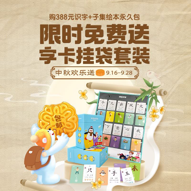【9.16-9.28丨包邮送识字卡100张+挂袋】洪恩识字永久识字包+永久子集绘本包,专业分级阅读识字,内含1300个高频常用汉字!