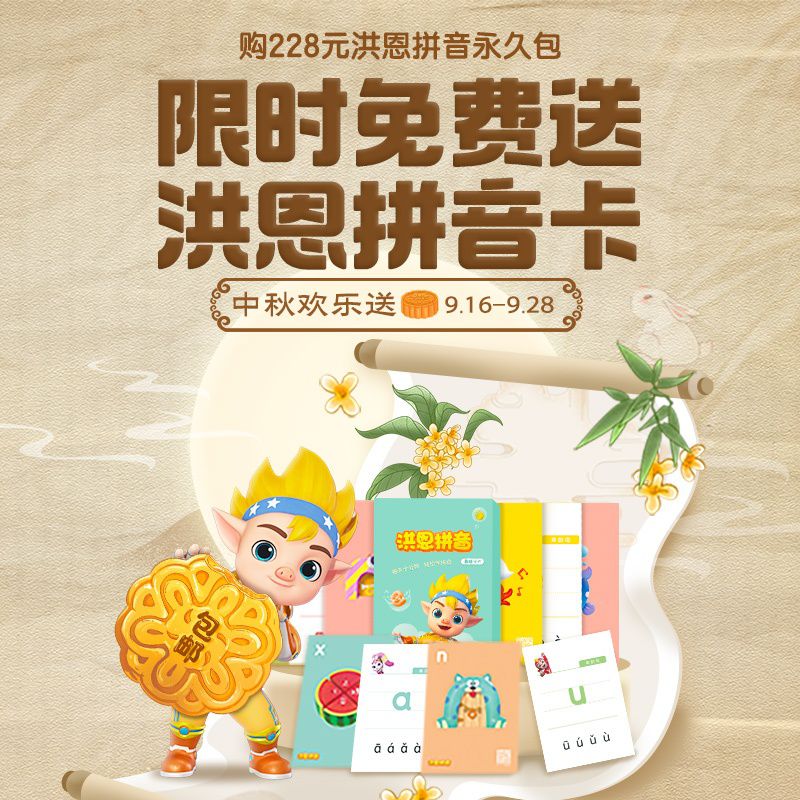 【9.16-9.28丨包邮送洪恩拼音卡】洪恩拼音拼读永久包,拼音儿歌交互,锻炼孩子拼读、应用、书写等能力!