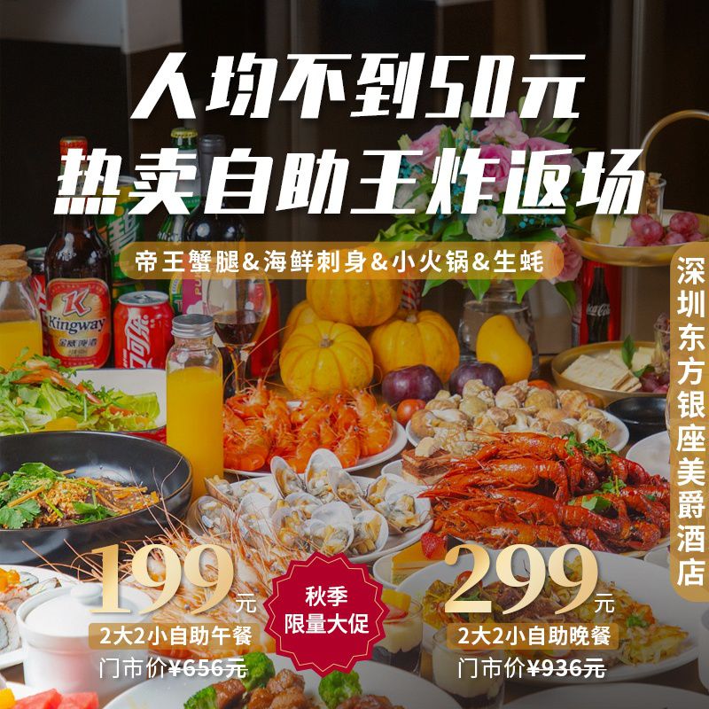 【热卖返场·限抢7天】人均¥50+享福田CBD王炸自助!『深圳东方银座美爵酒店』自助午/晚餐:帝王蟹腿&海鲜刺身&小火锅&生蚝...超长有效期至年底~