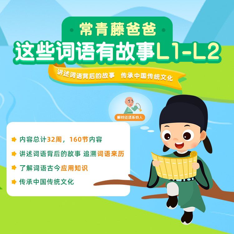 【常爸“这些词语有故事”L1+L2】32周共160节内容,讲述词语背后的故事,追溯词语来历,了解词语古今应用知识,丰富文学常识