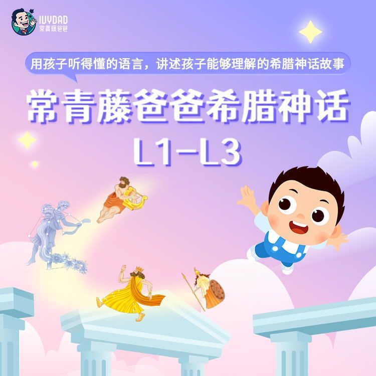 【限时返场】常爸希腊神话L1~L3,独特动画绘本互动,每周主讲一位希腊之神,用故事教宝贝理解善恶,拓宽视野!