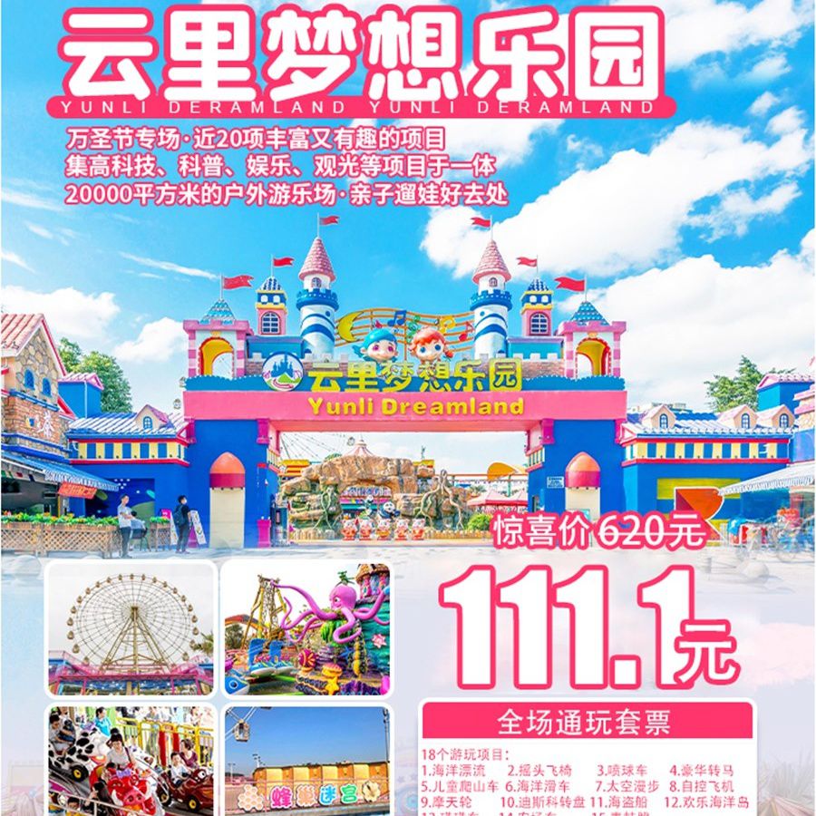 【双11钜惠】1.8折,¥111.1一票通玩全场!云里梦想乐园:20000㎡+超大游玩面积,趣享摩天轮、豪华转马、太空漫步等近18个项目,解锁网红溜娃新地标!
