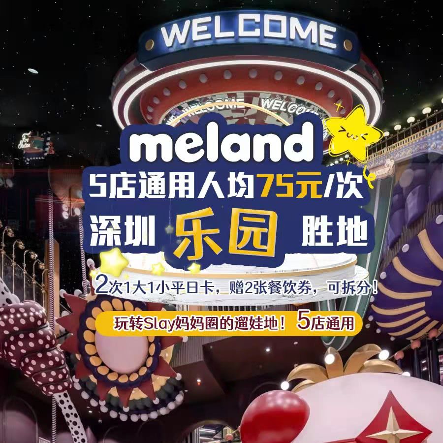 5店通用!折合人均¥75/次!¥298抢深圳乐园天花板【meland club】2次1大1小平日卡,赠2张餐饮券,可拆分!超现实沉浸式童话国度,玩转Slay妈妈圈的遛娃地!