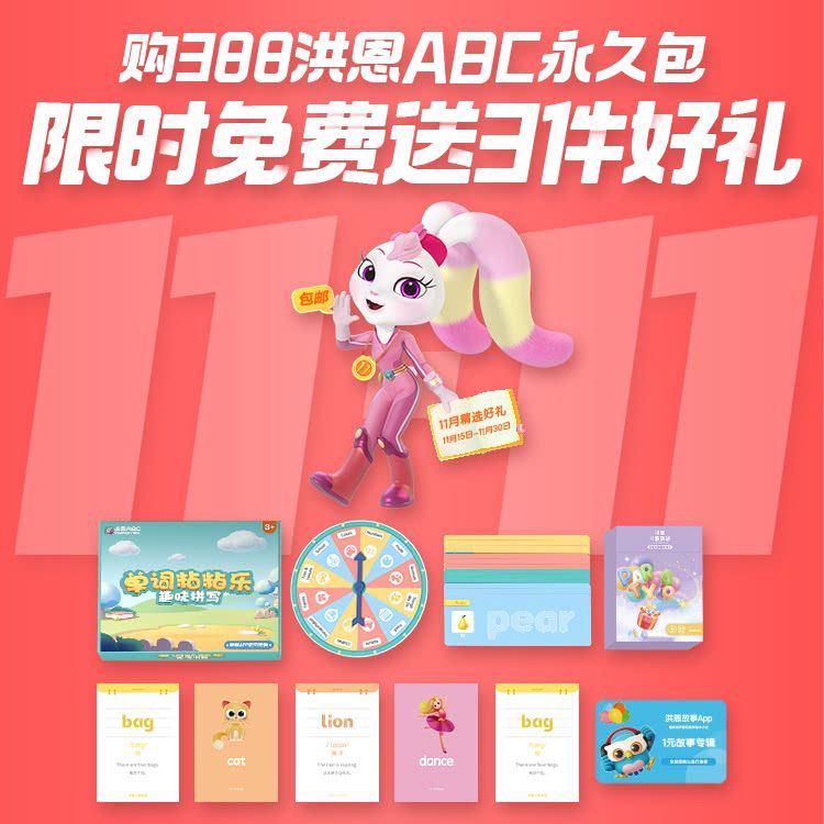 【11.15-11.30丨限时赠送英语单词卡+单词粘粘乐+洪恩故事专辑】洪恩ABC永久包全新升级,科学启蒙13个主题场景,贴近生活,专业插画师团队,页面精美!