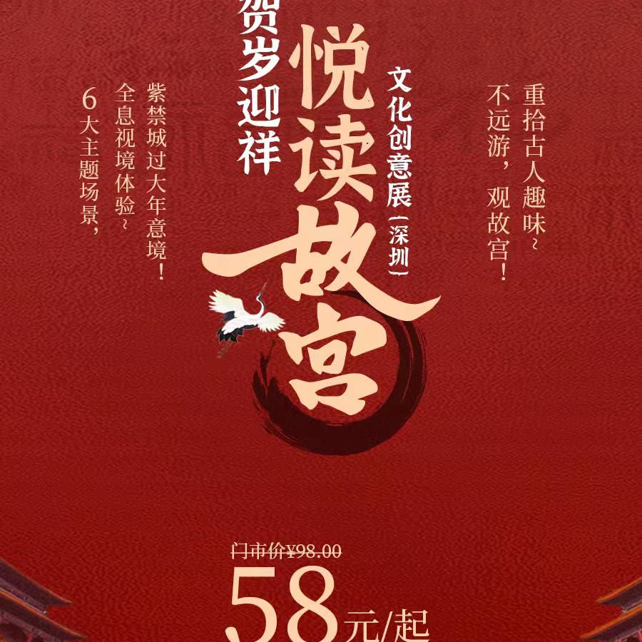 不远游,观故宫!早鸟钜惠¥58起,“贺岁迎祥--悦读故宫”文化创意展首次登陆深圳!6大主题场景,全息视境体验,呈现紫禁城过大年意境,重拾古人趣味~