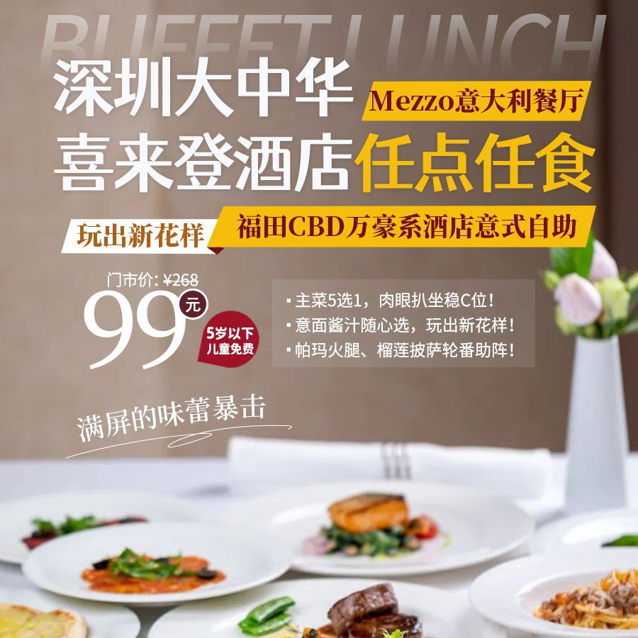 福田CBD万豪系酒店意式自助!¥99/位,【深圳大中华喜来登酒店】平日午餐任点任食!香煎肉眼、帕玛火腿重磅加持,意面酱汁随心选,玩出新花样!