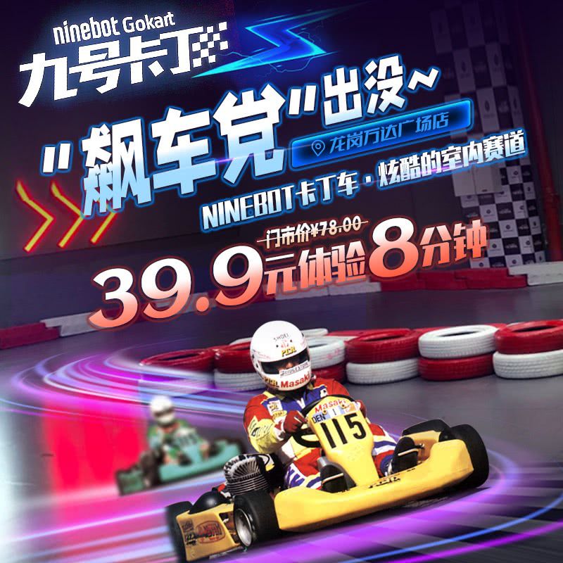 【限量100张,售完即涨】“飙车党”出没!龙岗万达『九号卡丁车』,¥39.9体验8分钟!超刺激的ninebot卡丁车,超炫酷的室内赛道,大小朋友帅炸飙车,尽情驰骋~