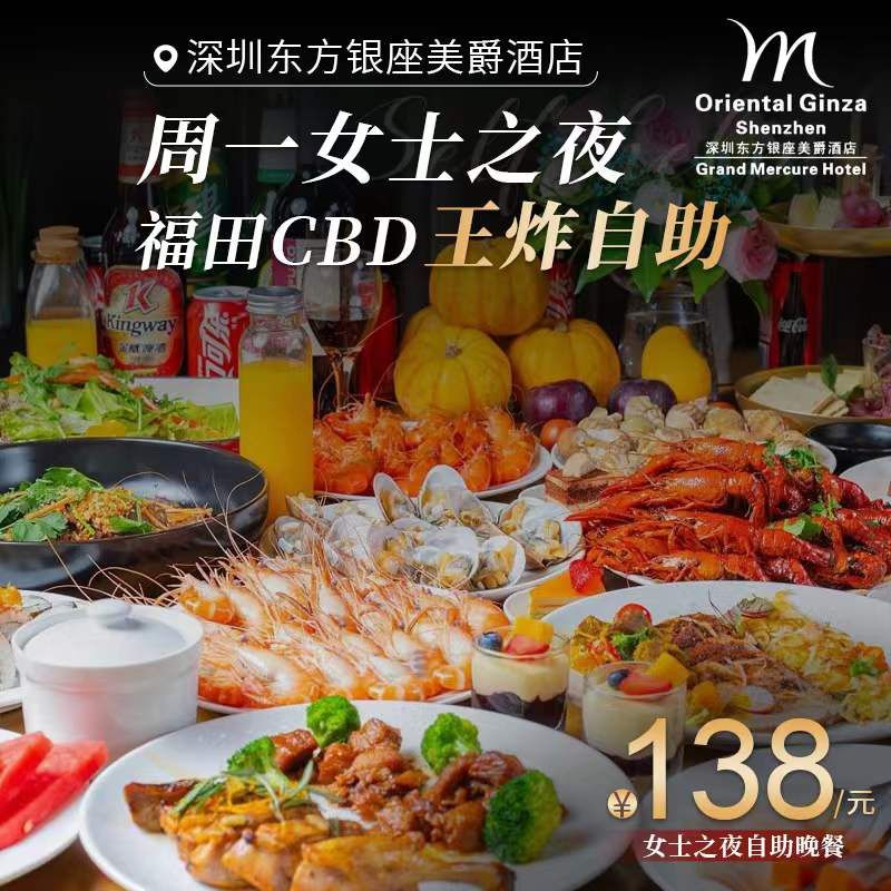 【周一女士之夜】¥138=1大1小自助晚餐,福田CBD『深圳东方银座美爵酒店』:帝王蟹腿&海鲜刺身鲜味十足、小火锅+生蚝畅吃...100+种尖货!
