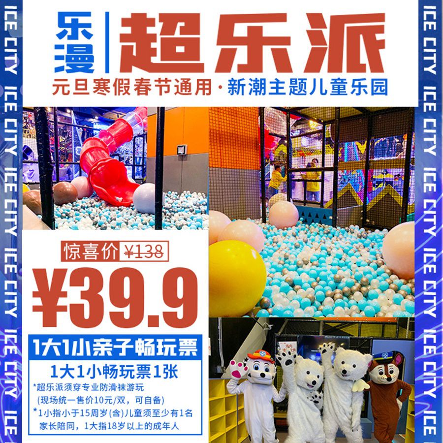 元旦春节寒假可用!¥39.9/1大1小畅玩【乐漫x超乐派】,1000㎡新潮主题儿童乐园,蹦床、海洋球池、攀岩等超多游玩项目,打卡酷炫高颜值网红点~