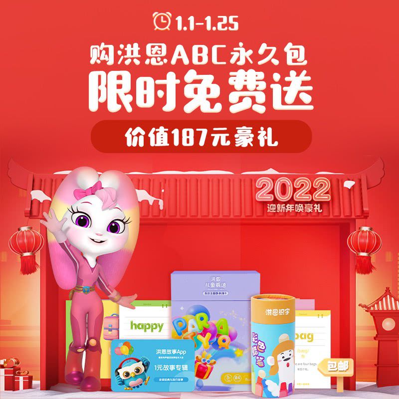 【迎新年1.1-1.25丨限时赠英语单词卡+识字12色蜡笔+1元故事专辑】洪恩ABC永久包全新升级,科学启蒙13个主题场景,贴近生活,专业插画师团队,页面精美!