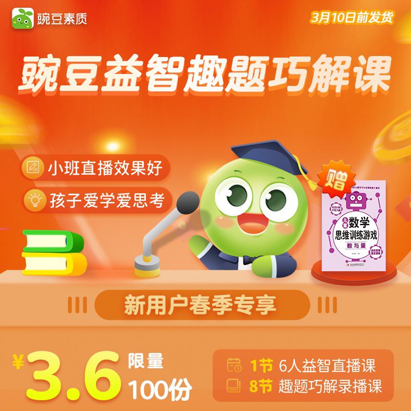 【3.6元抢9节 | 包邮送思维训练游戏书】豌豆益智·趣题巧解课,1节小班直播+8节AI互动,了解数字魅力,锻炼逻辑思维,在课程与游戏中提高策略性思考能力