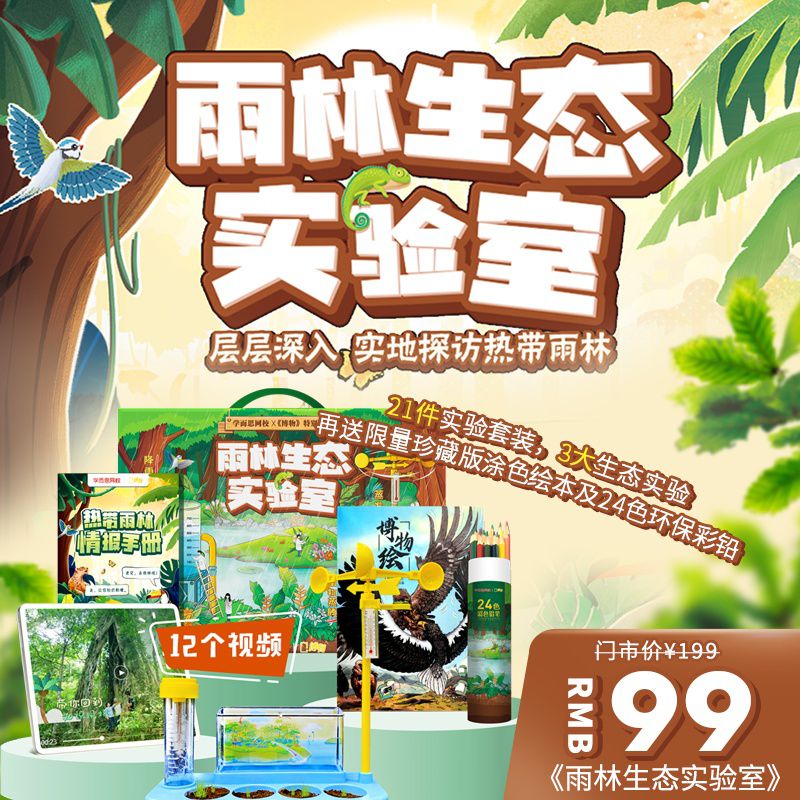 学而思网校x《博物》杂志联合打造【雨林生态实验室】,带你“实地探访热带雨林”!21件实验套装,3大生态实验,再送限量珍藏版涂色绘本及24色环保彩铅