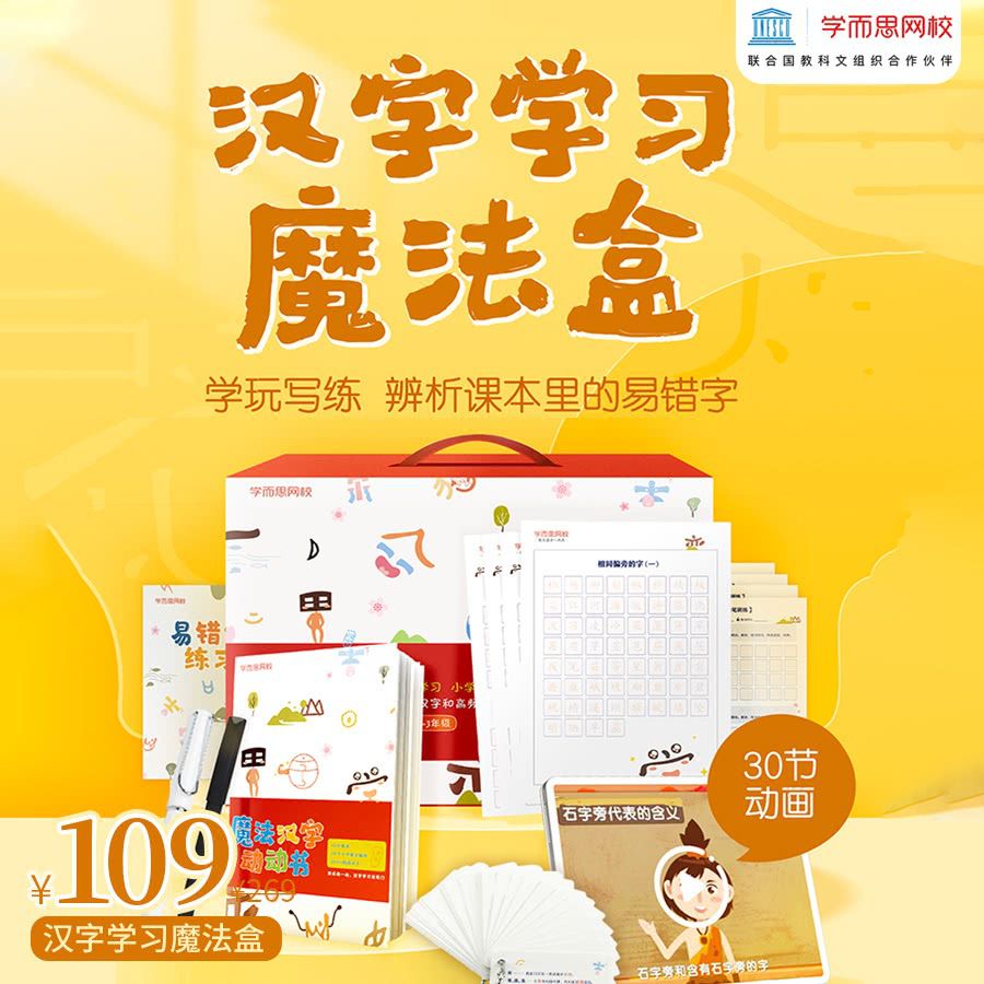 学而思《汉字学习魔法盒》,包邮配送汉字礼盒 | 定制汉字学习完整方案,动画+汉字动动书,学玩写练,理解记忆易错字,学写一手漂亮字!