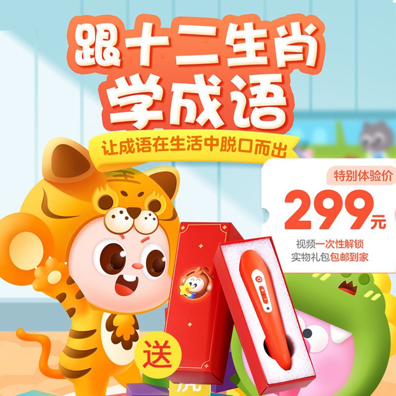 【包邮送超值点读笔大礼包】学而思小猴出品《跟十二生肖学成语》:8集成语动画视频+5集表达能力动画视频+8次知识分享,再赠391个电子绘本+936诗词音频/电台