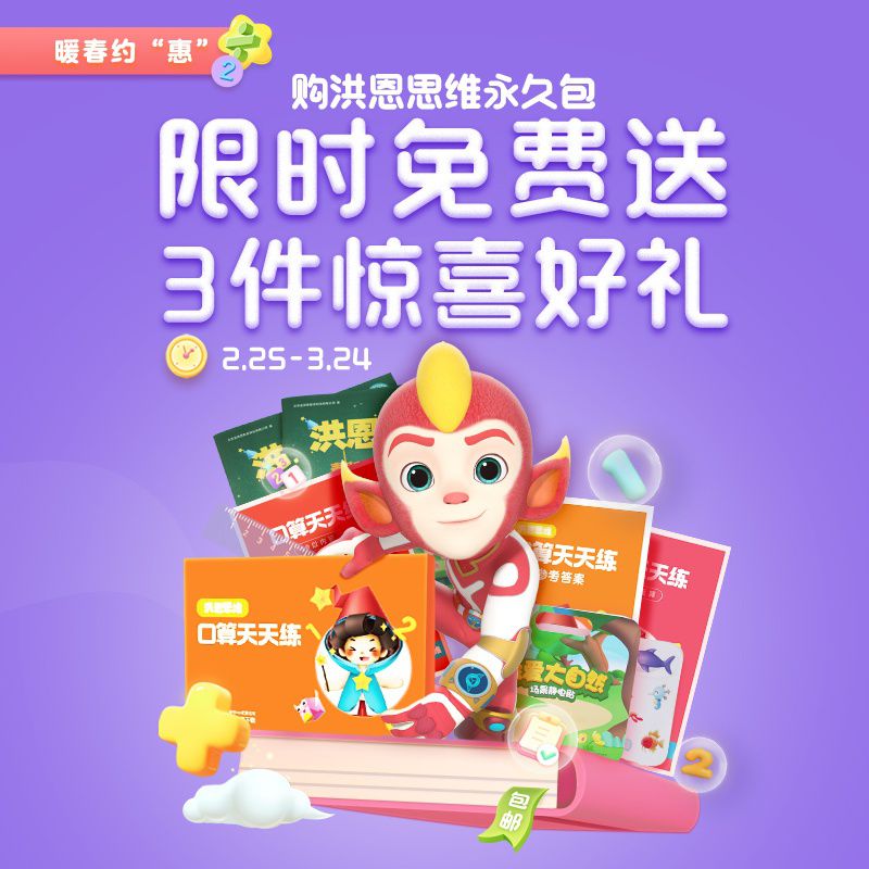 【春日开学季2.25-3.24丨包邮赠洪恩思维口算天天练+麦斯练习册+我爱大自然磁贴】洪恩思维永久卡,趣味思维训练游戏,增强宝贝记忆力,口算更快!