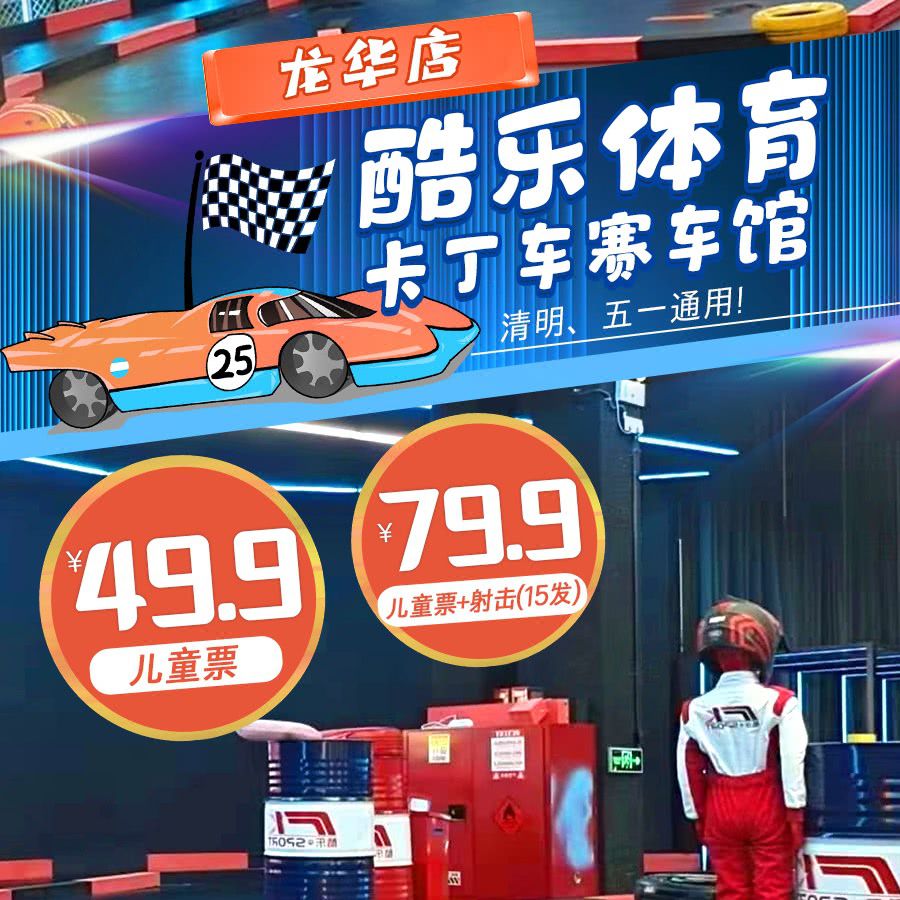 【清明、五一通用】“飙”车圣地!¥49.9起畅享酷乐体育卡丁车赛车馆,就在龙华星河ico!专业教练团队,多种弯道组合,还有炫酷射击体验~