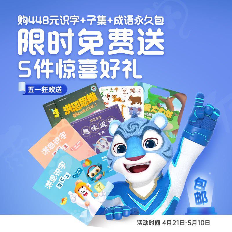 【五一狂欢送丨包邮赠成语绘本+磁贴+识字描红本+麦斯练习册+电子故事专辑】洪恩永久识字包+成语永久包+子集绘本永久包,1300个常用汉字启蒙!