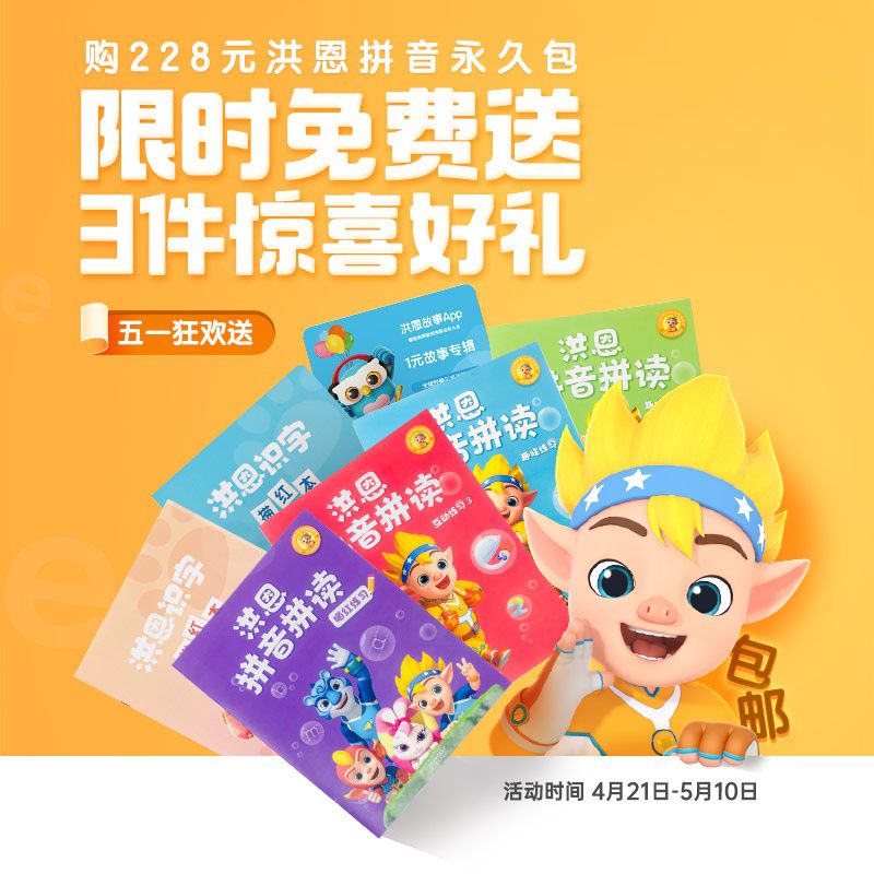 【五一狂欢送4.21-5.10丨包邮送拼音练习册+识字描红本+电子故事专辑】洪恩拼音拼读永久包,拼音儿歌交互,锻炼孩子拼读、应用、书写等能力!